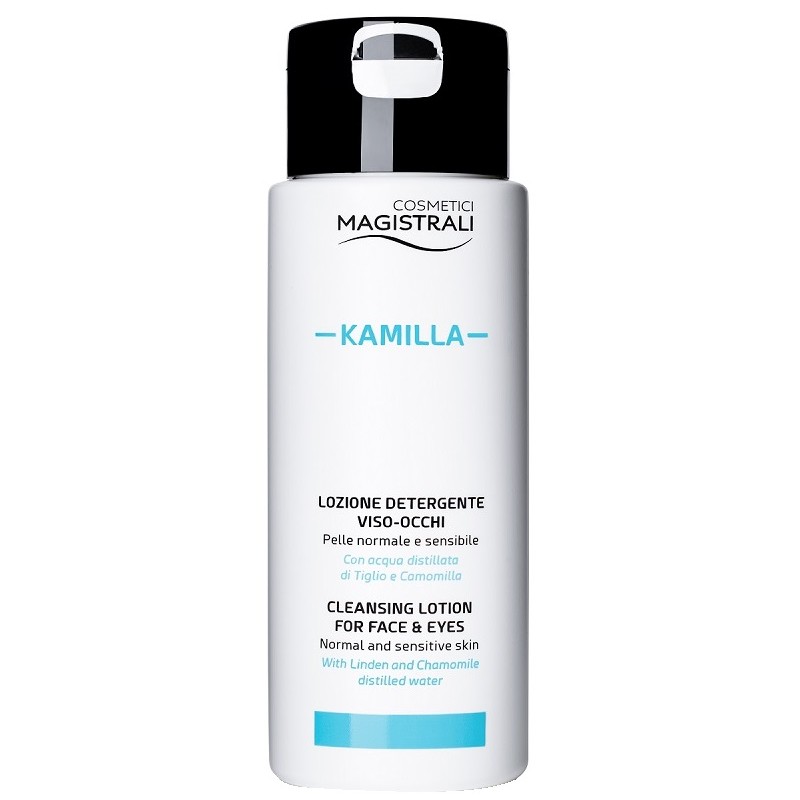 Lozione detergente viso-occhi, senza risciacquo. Lozione formulata allo stesso pH e concentrazione salina del liquido lacrimale. Senza aggiunta di profumazioni, Kamilla coniuga l'azione lenitiva e calmante dell'Acqua distillata e dell'Olio di Camomilla con l'azione rinfrescante e distensiva dell'Acqua distillata di Tiglio. Per pelle normale e sensibile.