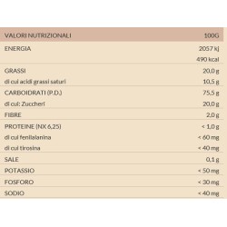 | Proteine (Nx6,25) di cui Fenilalanina Tirosina | < 1,0 g < 60,0 mg < 40,0 mg |