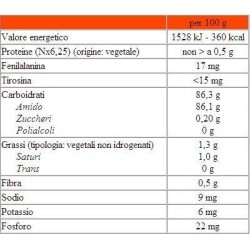 Alimento a fini medici speciali. Alimento con ridotto valore proteico, residuo proteico inferiore all’ 1%. Indicato per la gestione dietetica di persone affette dalle seguenti patologie insufficienze renali croniche (nefropatie) o altre malattie che richiedono un regime dietetico ipoproteico.