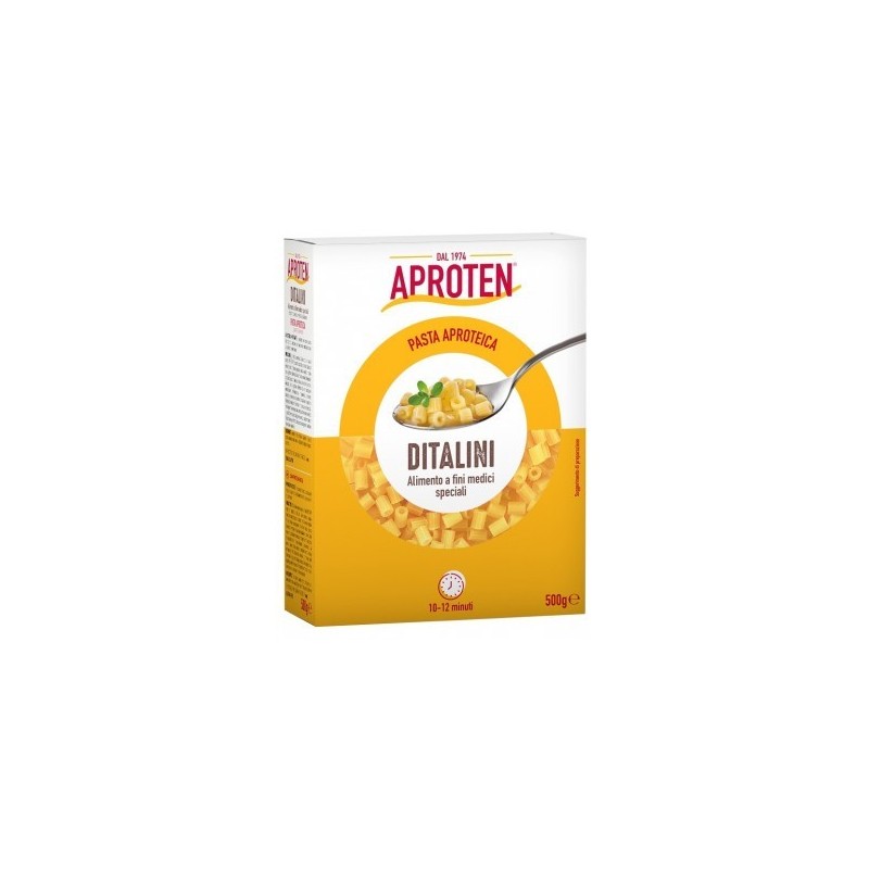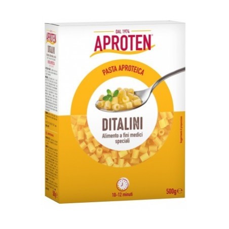 La Pasta aproteica della linea di prodotti APROTEN, è caratterizzata da: contenuto basso di proteine, sodio, fosforo e potassio che la rendono indicata per la gestione dietetica di insufficienze renali (nefropatie); contenuto basso di tirosina e fenilalanina che la rendono indicata per la gestione dietetica di aminoacidopatie metaboliche (fenilchetonuria, tirosinemia); contenuto basso di proteine che la rendono indicata per la gestione dietetica del morbo di Parkinson (in terapia con Levodopa). Per il paziente in terapia con Levodopa deve essere valutato il grado di eventuale disfagia e le eventuali problematiche di malnutrizione per difetto che possono insorgere in condizioni di restrizione proteica.