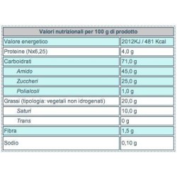 | Carboidrati Amido Zuccheri Polialcoli | 71,0 g 45,0 g 25,0 g 1,0 g |