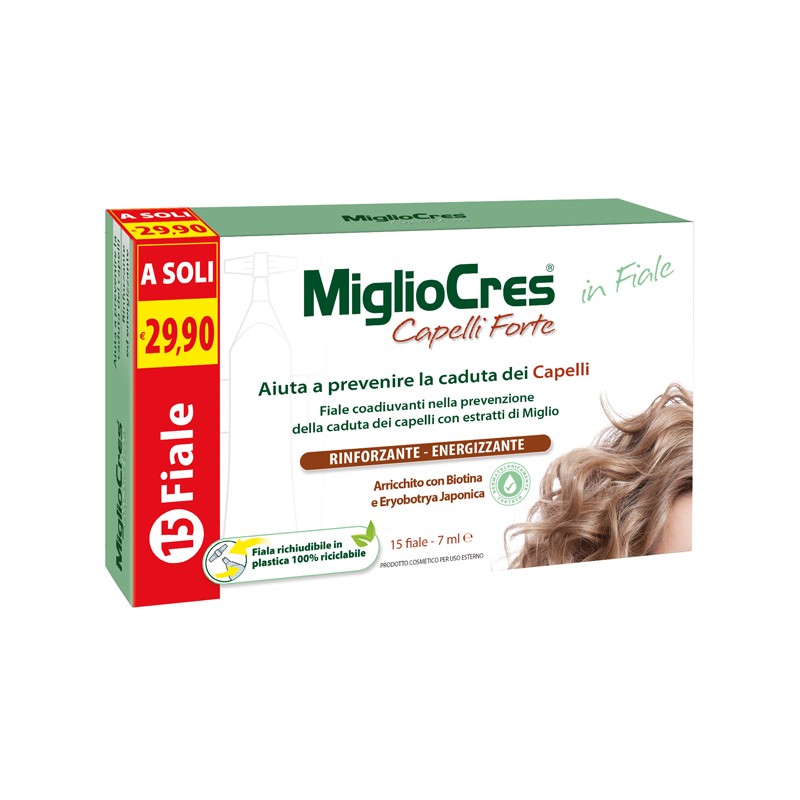 MiglioCres Capelli Forte è un trattamento dermocosmetico in fiale, coadiuvante nella prevenzione della caduta dei capelli.