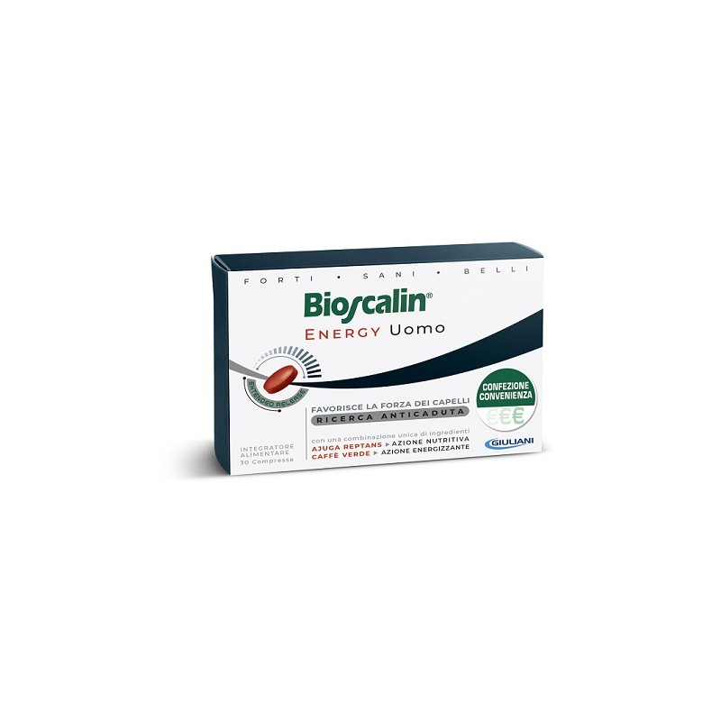 Integratore per i capelli indicato per trasmettere dall'interno la giusta dose d'energia ai follicoli. Le compresse di Bioscalin Energy contengono attivi (arginina, caffeina e carnitina) implicati nei processi del metabolismo energetico cellulare per risvegliare l'attività dei follicoli e favorire la crescita di capelli forti e vigorosi. Inoltre. svolge la sua azione grazie a due esclusivi complessi, operanti in combinazione con una tecnologia di rilascio brevettata in grado di veicolare in modo ottimale gli attivi, potenziandone l'azione sul capello.