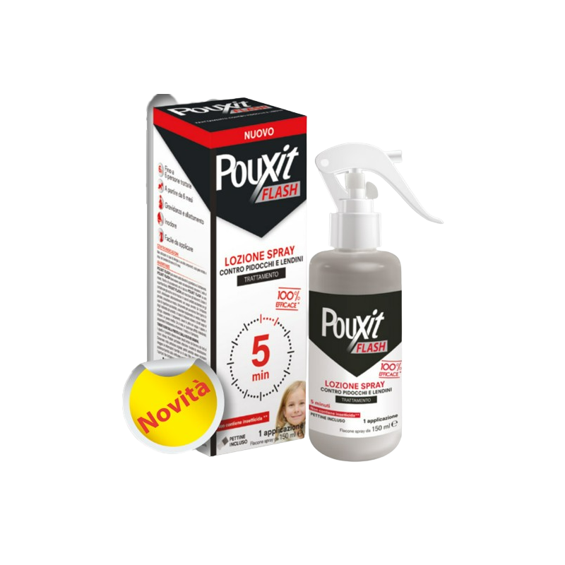 POUXIT FLASH è indicato nel trattamento di pidocchi del cuoio capelluto (pidocchi della testa) e delle lendini nell'adulto e nel bambino di più di 6 mesi. Grazie al complesso Dimétiol, POUXIT FLASH uccide il 100% dei pidocchi e delle lendini attraverso un'azione meccanica. Questa formula rapida ostruisce gli orifizi respiratori e il canale escretore di pidocchi e lendini causandone la morte in soli 5 minuti. Non contiene sostanze con azione neurotossica sul pidocchio e sulla lendine.