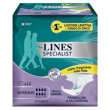Lines Specialist Pannolone a Mutandina Super/Maxi. Misura Grande (circonferenza vita 100-150 cm).