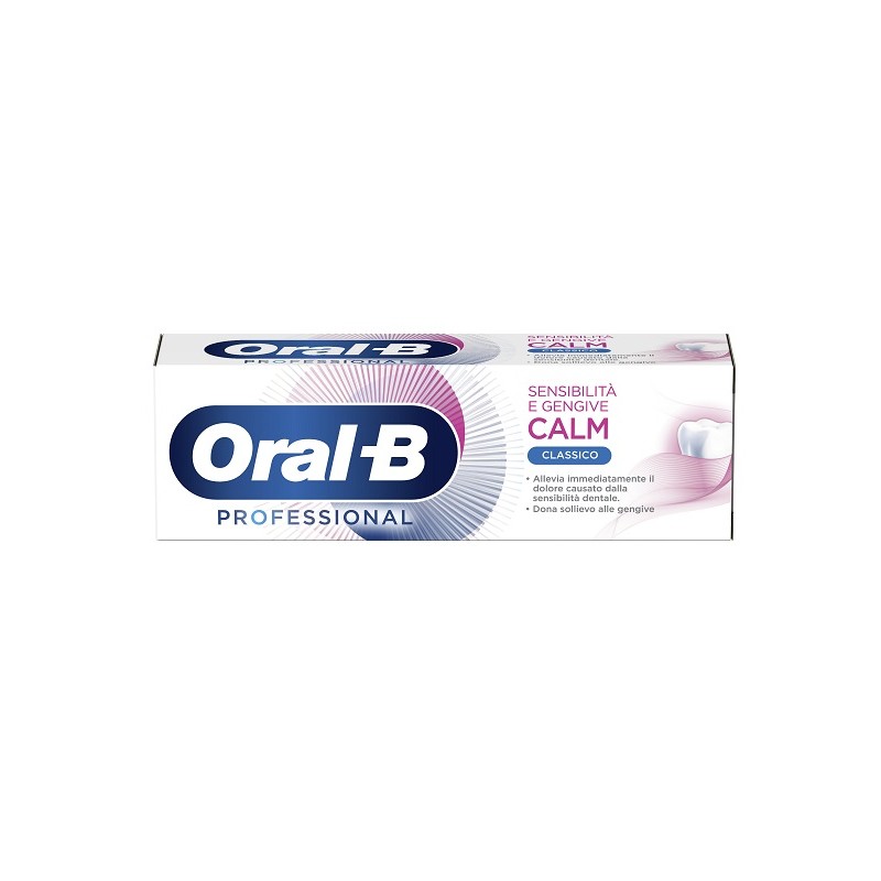 Il dentifricio Oral-B della linea Professional Sensibilità e Gengive CALM è clinicamente testato per alleviare il dolore causato dalla sensibilità dentale e per dare sollievo alle gengive lasciando un immediato comfort in bocca. Prodotto da Procter & Gamble.