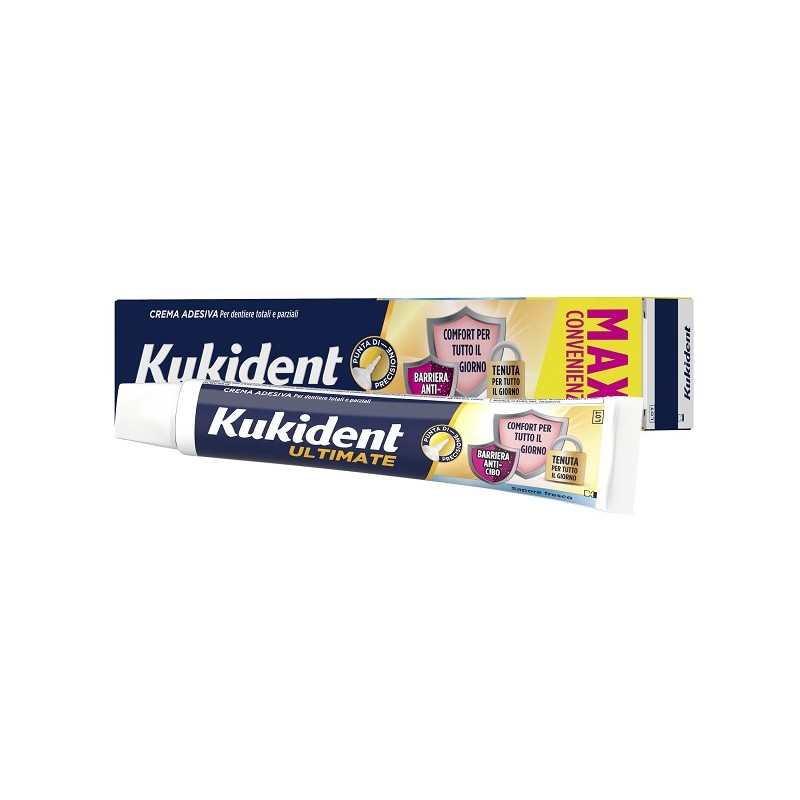 Kukident Ultimate Fresco 40 g è una crema adesiva per protesi dentarie studiata per offrire tenuta forte, protezione contro infiltrazioni e freschezza alla menta.