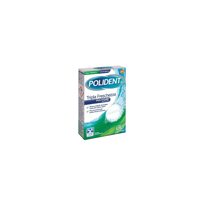 POLIDENT Tripla freschezza viene usato per eliminare la maggior parte dei batteri responsabili dei cattivi odori, eliminano le macchie più tenaci.