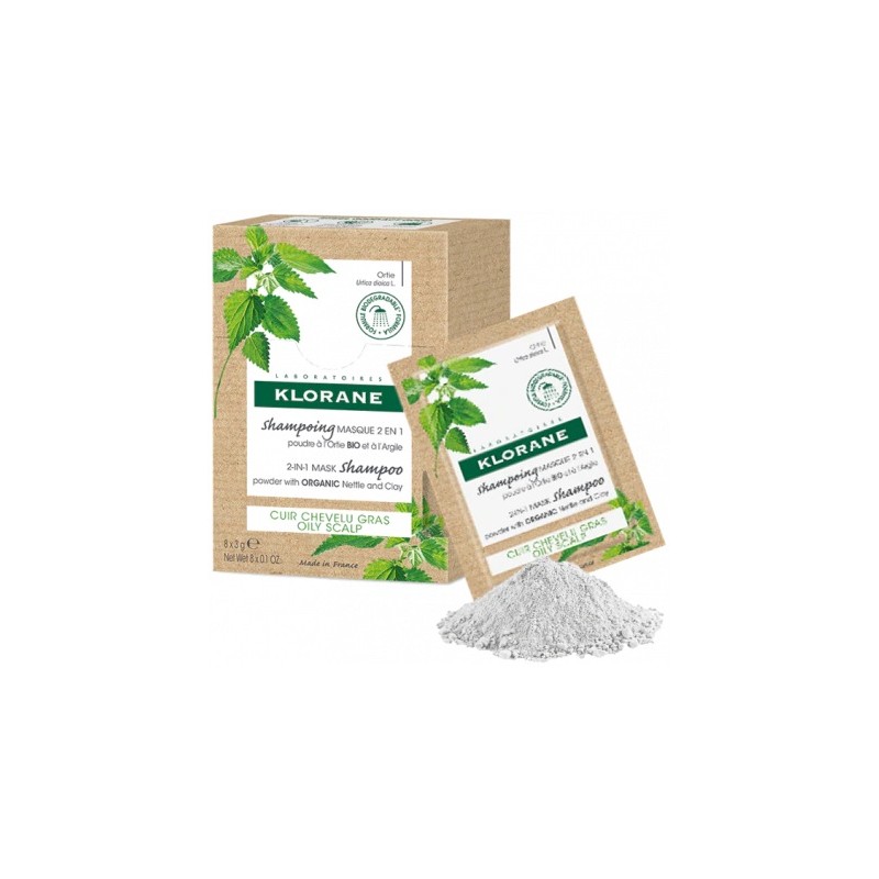 Dettagli di Klorane Shampoo Maschera Lavante Polvere Ortica 8 Bustine 3 G