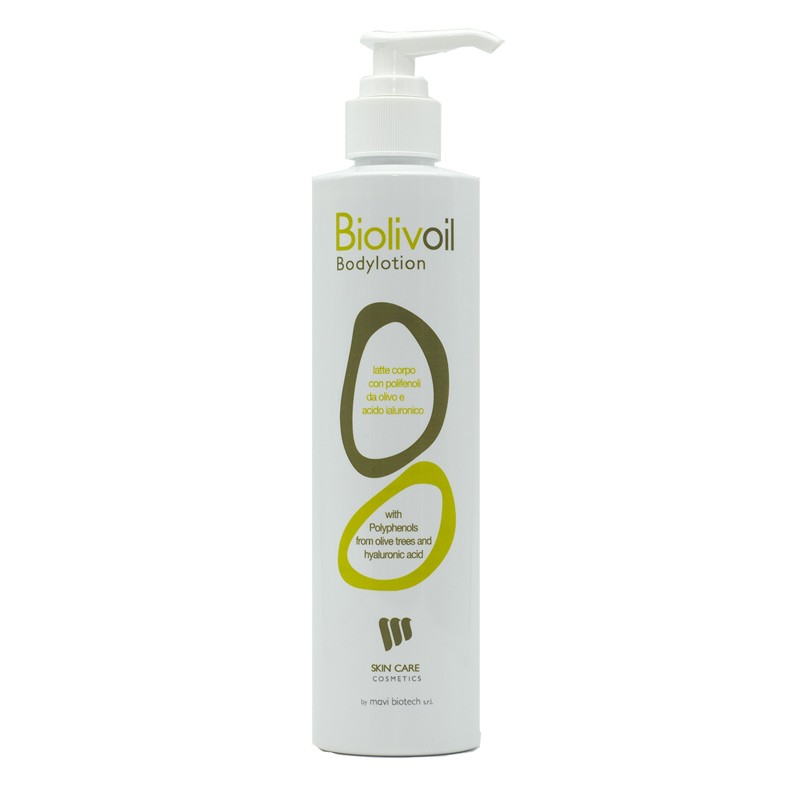 Biolivoil Bodylotion, grazie alla presenza di olio extravergine di oliva, vitamine A ed E, idrata intensamente, favorisce la produzione di collagene ed elastina migliorando elasticità e tono della pelle. Inoltre, il complesso a lento rilascio "polifenoli-acido ialuronico" avvolge la pelle in un biofilm invisibile che aiuta a proteggerla dal danno ossidativo causato da agenti di varia natura migliorandone le difese naturali.