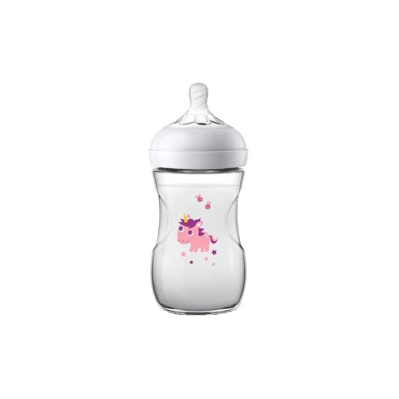 Avent Philips biberon Natural Unicorno 260 ml - Ampia tettarella ultramorbida dalla forma anatomica per riprodurre la sensazione del seno per un allattamento simile a quello al seno e aiutare il tuo bambino a passare facilmente dall'allattamento al seno a quello al biberon.