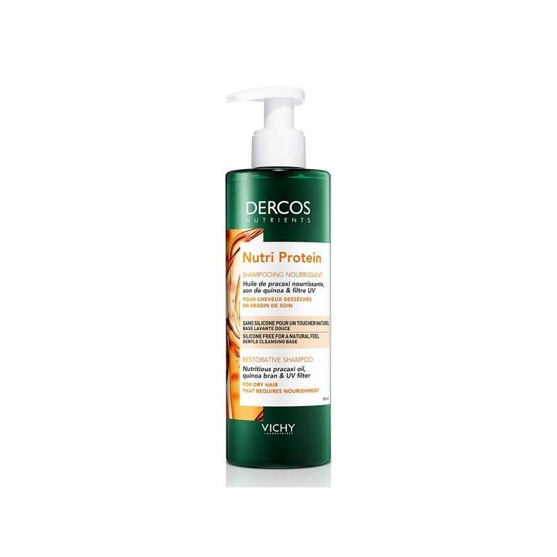 Shampoo ristrutturante con formula nutri proteica e filtro UV per capelli secchi e sfibrati la sua composizione a base di olio di pracaxi e crusca di quinoa permette di proteggere i capelli da aggressioni termiche meccaniche e chimiche nutrendo allo stesso tempo la fibra capillare andando a ristrutturarla per un aspetto e una consistenza morbida e setosa e capelli sani.