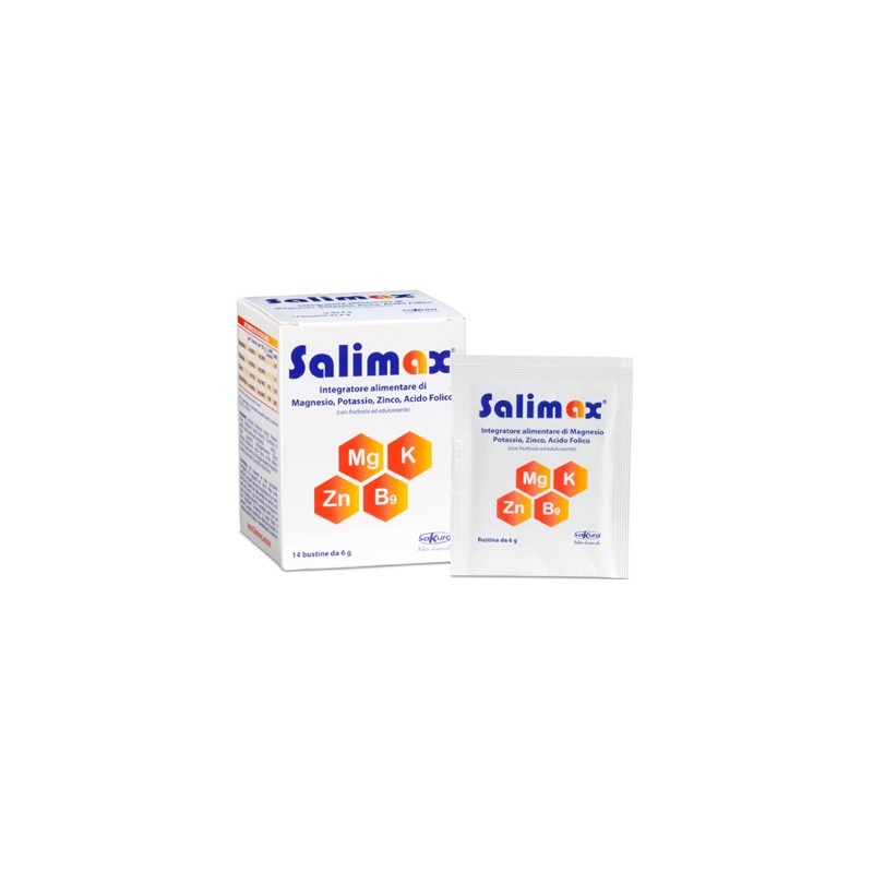 Salimax aiuta a contrastare situazioni di stanchezza, affaticamento e al mantenimento di normali funzioni psicofisiche grazie alla presenza di magnesio e acido folico.