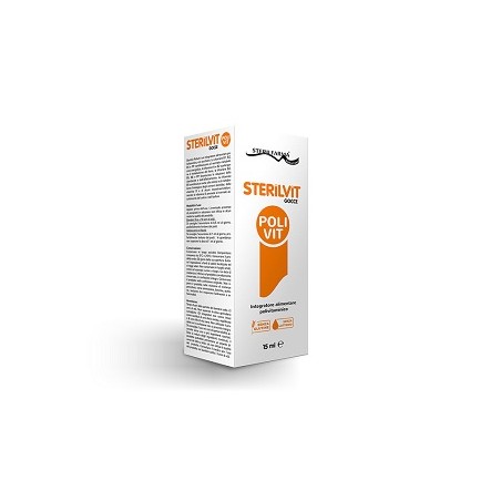 SterilVit PoliVit è un integratore alimentare multivitaminico prodotto da SterilFarma a base di Vitamina D per il normale sviluppo delle ossa, il buon mantenimento dei denti, delle funzioni muscolari ed immunitarie, il regolare assorbimento ed utilizzo di Calcio e Fosforo; Biotina e Vit. del gruppo B (B5,B1,B6 e B2 e B12) che contribuiscono al buon metabolismo energetico; Acido Folico, Vit. A, C, B6, B12 per le naturali funzioni immunitarie; Vit. B5, Niacina e Riboflavina per la riduzione del senso di stanchezza ed affaticamento; Vit. A e C per il buon metabolismo ed assorbimento del Ferro.