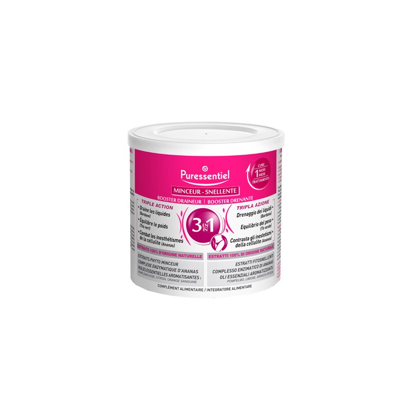 Integratore alimentare formulato con estratti al 100% di origine naturale nella formulazione troviamo 3 estratti fitosnellenti quali ananas, il tè verde e la bardana per un effetto drenante, anticellulite e snellente favorendo la funzionalità del microcircolo.