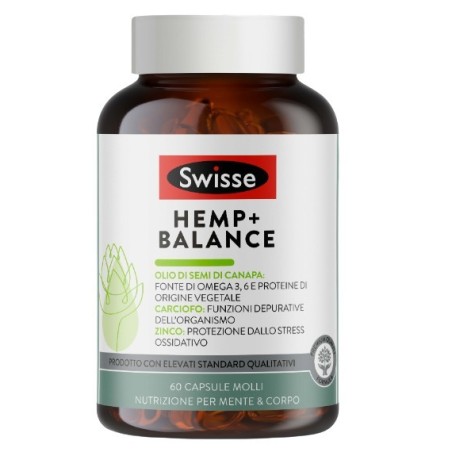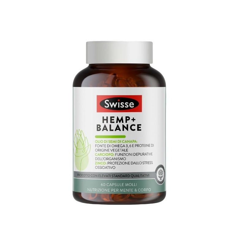 Dall'esigenza e bisogno del mantenimento del suddetto equilibrio nasce Swisse Hemp+ Balance, una formula multi-nutriente scientificamente studiata per integrare la tua nutrizione e supportare il tuo equilibrio interno dalla formulazione unica che associa olio di semi di canapa spremuto a freddo, una ricca fonte vegetale di acidi grassi essenziali, con estratti di erbe, vitamine e minerali selezionati.
