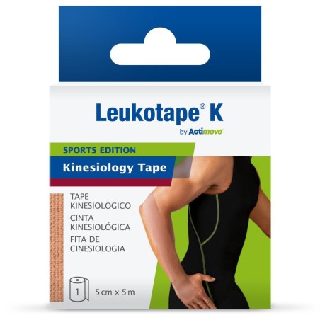 Dettagli di Essity Benda Adesiva Actimove Leukotape K Taping Fisioterapico Largghezza 5 Cm Lunghezza 5 M Colore Carne In Rotolo