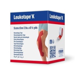 Dettagli di Essity Benda Adesiva Actimove Leukotape K Taping Fisioterapico Larghezza 5 Cm Lunghezza 5 M Colore Rosso In Rotolo