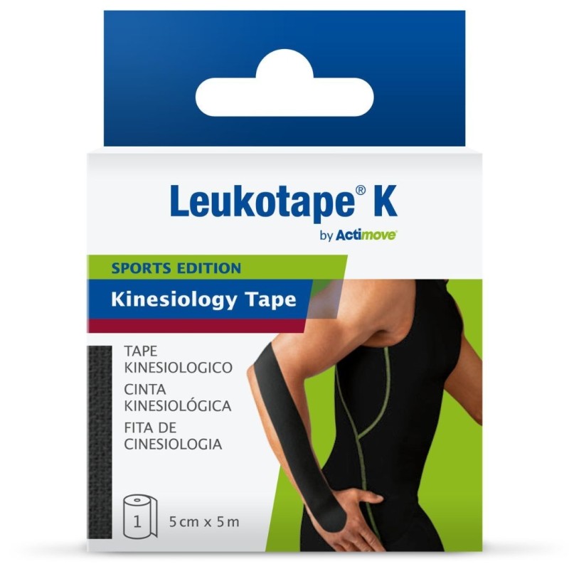 Essity Benda Adesiva Actimove Leukotape K Taping Fisioterapico Larghezza 5 Cm Lunghezza 5 M Colore Nero In Rotolo