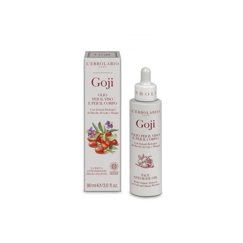 L'erbolario Lodi Goji Olio per il Viso e per il Corpo, è un olio per un trattamento doppio: sulla pelle del viso, per donarle setosità e nutrimento e sul corpo, per avvolgerlo in un massaggio vellutante. Prodotto da L'erbolario.