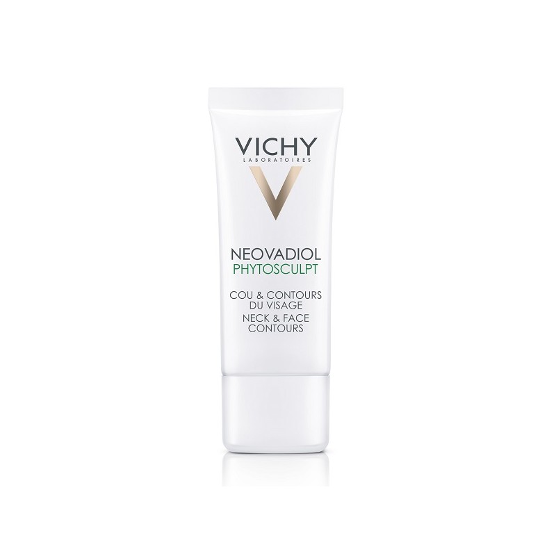 Neovadiol phytosculpt è la crema vichy dalla texture fresca che raffreddando la pelle svolge un effetto tensore sulle rughe del collo e dei contorni del viso, indicata per la donna durante la menopausa, quando la densità della pelle diminuisce, causando pieghe della pelle del collo e cedimento dei contorni del viso con conseguente rilassamento dell’ovale
