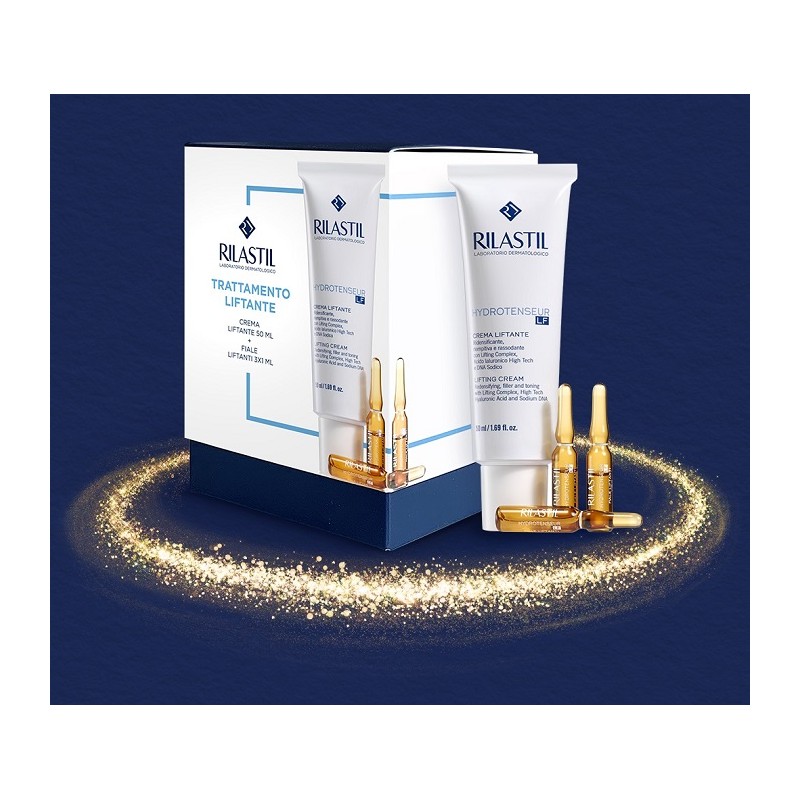 Rilastil crema antirughe ricca di Acido Ialuronico, che lavora da booster, potenziando l'efficacia del prodotto e portando alla pelle elasticità e idratazione è utile per contrastare i segni del tempo ed in particolare le rughe gravitazionali, che si manifestano in generaalle dai 40 anni in poi. La linea Rilastil Hydrotenseur liftante LF è formulata con principi attivi capaci di svolgere una duplice azione sia decontratturante che miorilassante andando quindi sia a limitare le rughe di espressione del viso sia a rimepirle grazie ad un effetto filler. Il risultato visibile già dopo i primi trattamenti sarà di avere una perlle più levigata e liftata con l'ovale del viso che apparirà più tonico.