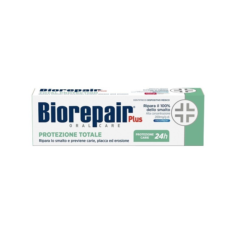 Biorepair Plus Protezione Totale, il miglior alleato per la riparare lo smalto danneggiato e occludere i tubuli dentinali scoperti. Formulazione arricchita con Zinco PCA per contrastare la proliferazione batterica. Ideale per chi soffre di alitosi.