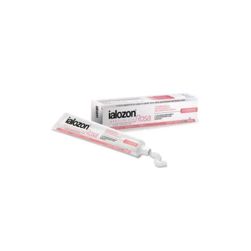 Dentifricio con esclusiva formula di sale kosher, idrossiapatite, antiacido, olio di oliva ozonizzato, lattoferrina, lisozime che aiuta a dare rapido sollievo alla sensibilità dentale e dona sollievo già alla prima applicazione. Favorisce allo sbiancamento naturale dei denti. Garantisce una corretta igiene quotidiana, protegge e rinforza i denti contro le carie. Il dentifricio Ialozion Rosa protegge e rende più resistenti i denti dagli attacchi acidi di batteri, cibi, bevande e da reflusso gastroesofageo. Adatto a tutta la famiglia.