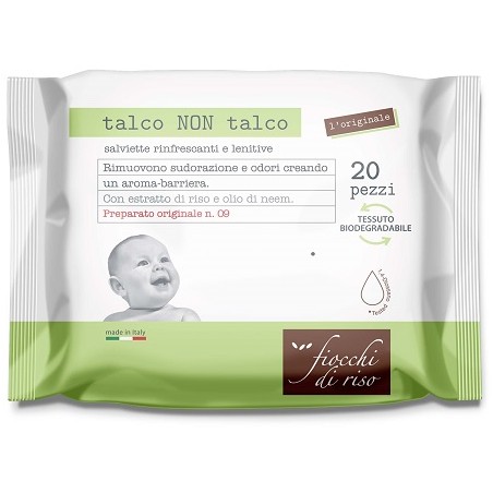 Salviette talco non talco sono un preparato originale formulato con componenti dermo-compatibili che rimuovono naturalmente gli odori e gli effetti della sudor...