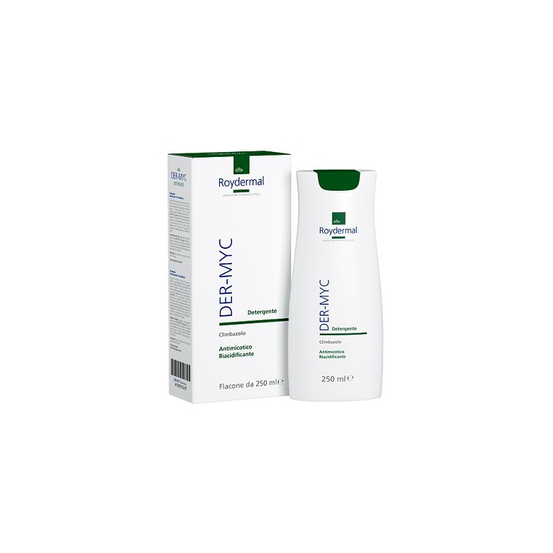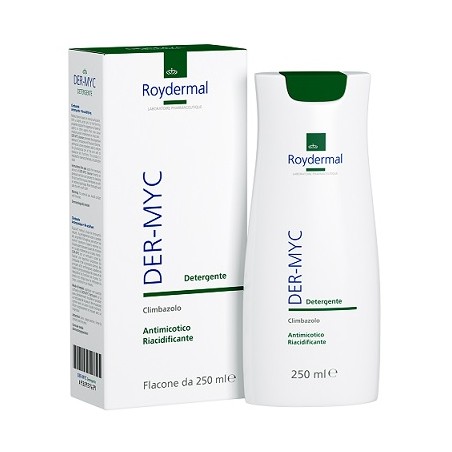 Dispositivo medico a base di tensioattivi naturali e pH leggermente acido, con proprietà filmogene contrastanti l'aggressione degli agenti esterni o di altri agenti capaci di creare irritazioni e/o intolleranze sulla cute integra. DER-MYC Detergente favorisce il rilascio progressivo di principi attivi antimicotici quali Climbazolo e Piroctone Olamine, capaci di ripristinare il pH fisiologico della cute determinandone il riequilibrio funzionale. Prodotto indicato per la pulizia del corpo, compreso il cuoio capelluto.