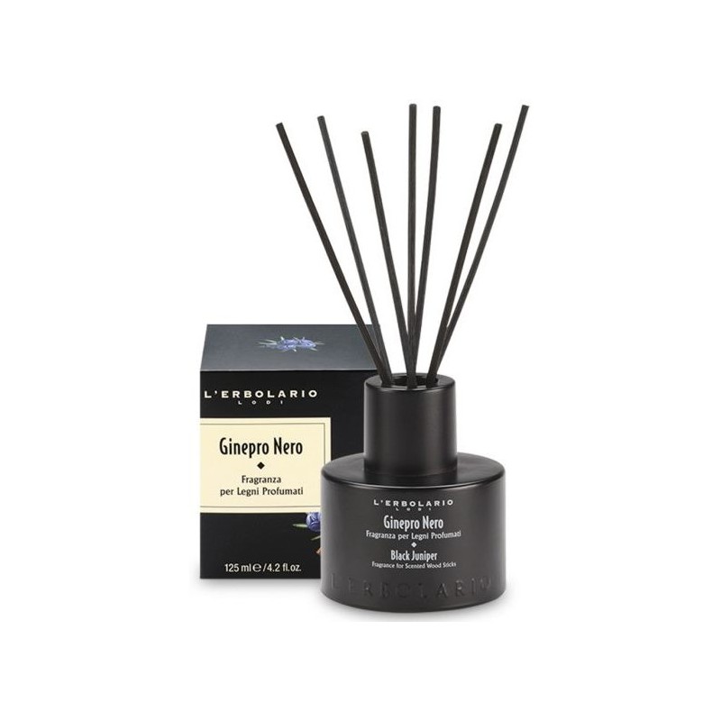 Foglie lunghe, appuntite, che graffiano l’aria tutt’intorno, profumandola con il loro aroma pungente e coraggioso. Macchia verde che si muove al vento, che si piega morbida ma statuaria, che sa crescere in altezza o in lunghezza a seconda delle condizioni climatiche in cui vive. Ispirandosi alle qualità di queste bacche, la ricerca fitocosmetica de L’Erbolario ha formulato la linea Ginepro Nero, cosmetici dedicati all’uomo vitale e dinamico che, seppur tra mille impegni, desidera trovare il tempo e l’energia per prendersi cura di sé. Dalle bacche di Ginepro abbiamo ricavato un’acqua distillata e un estratto pregiatissimo i quali, associati agli estratti di Sesamo e Cumino nero, impreziosiscono questi prodotti, in grado di far ritrovare la forza vitale, grazie ai loro attivi selezionati e alla loro profumazione virile e coraggiosa. Una linea che si prenderà cura della pelle di ogni uomo e la “coccolerà” con le sue virtù benefiche. Questa fragranza si spanderà leggera nelle stanze che più amate, rivitalizzando l’atmosfera e ritemprando lo spirito. Basterà immergere i bastoncini di rattan nella soluzione profumata e la sinfonia di Ginepro Nero, con le sue note agrumate e legnose, si sprigionerà subito nell’aria e assicurerà ai vostri ambienti una freschezza duratura.
