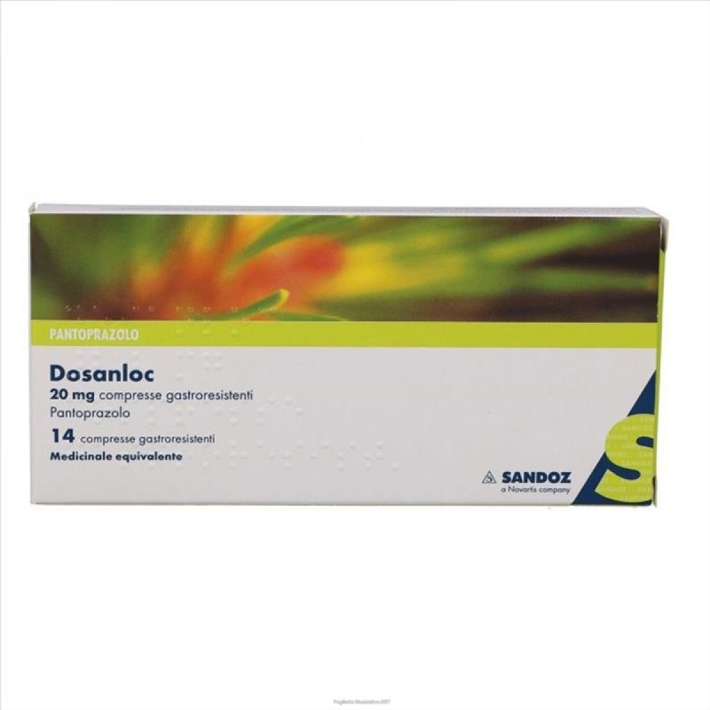 Posologia La dose raccomandata è 20 mg di pantoprazolo (una compressa) al giorno. Può essere necessario assumere le compresse per 2–3 giorni consecutivi per ottenere un miglioramento dei sintomi. Una volta raggiunta la completa guarigione dai sintomi, il trattamento deve essere sospeso. Il trattamento non deve superare le 4 settimane senza la preventiva consulenza di un medico. Se entro 2 settimane di trattamento continuo non si nota alcun miglioramento dei sintomi, il paziente deve essere istruito a rivolgersi a un medico. Popolazioni speciali Nei pazienti anziani o nei pazienti con compromissione della funzionalità renale o epatica non è necessario alcun aggiustamento della dose. Popolazione pediatrica L’uso di Dosanloc non è raccomandato nei bambini e negli adolescenti sotto i 18 anni, a causa dell’insufficienza di dati sulla sua sicurezza ed efficacia. Modo di somministrazione Le compresse di Dosanloc non devono essere masticate né frantumate e devono essere deglutite intere con del liquido prima di un pasto.