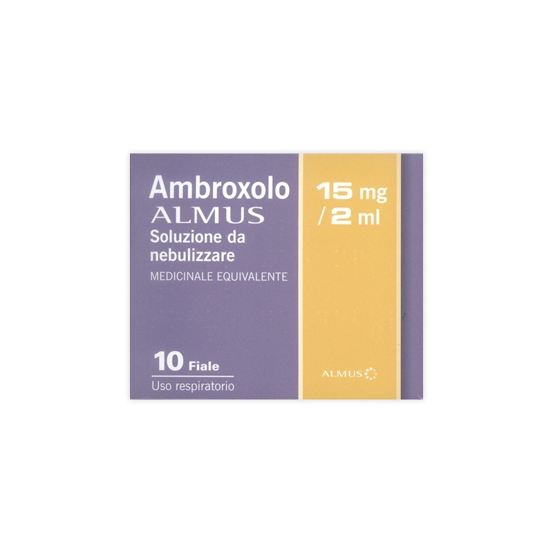 AMBROXOLO ALMUS 15 mg/2 ml soluzione da nebulizzare Una fiala contiene: Principio attivo: ambroxolo cloridrato 15 mg. AMBROXOLO ALMUS 30 mg/10 ml sciroppo flacone 200 ml 100 ml contengono: Principio attivo: ambroxolo cloridrato 300 mg. AMBROXOLO ALMUS 30 mg/10 ml sciroppo contenitori monodose da 10 ml Ogni contenitore monodose contiene: Principio attivo: ambroxolo cloridrato 30 mg.