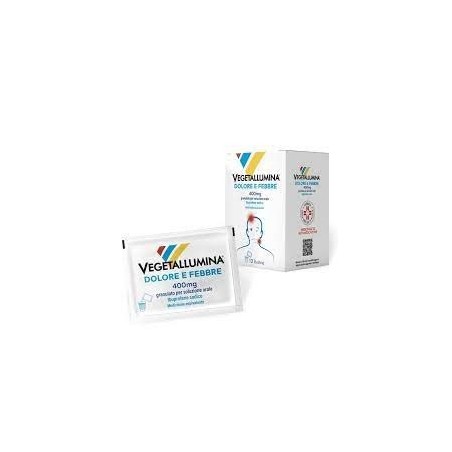 Posologia Adulti e ragazzi oltre i 12 anni: 1 bustina 2-3 volte al giorno. La dose massima giornaliera non deve superare i 1200 mg al giorno. La dose efficace più bassa deve essere usata per il periodo più breve necessario ad alleviare i sintomi (vedere paragrafo 4.4). Anziani: I pazienti anziani dovrebbero attenersi ai dosaggi minimi sopraindicati. Nel trattamento dei pazienti anziani la posologia deve essere attentamente stabilita dal medico che dovrà valutare una eventuale riduzione dei dosaggi sopraindicati. - In pazienti con alterata funzionalità renale, epatica o cardiaca i dosaggi dovrebbero essere ridotti. - Insufficienza epatica: cautela deve essere adottata nel trattamento dei pazienti con funzionalità epatica ridotta. In tali pazienti è opportuno ricorrere al monitoraggio periodico dei parametri clinici e di laboratorio, specialmente in caso di trattamento prolungato (vedere par. 4.4). L’uso di VEGETALLUMINA DOLORE E FEBBRE è controindicato in pazienti con grave insufficienza epatica (vedere par. 4.3). - Insufficienza renale: cautela deve essere adottata nel trattamento di pazienti con funzionalità renale ridotta. In tali pazienti è opportuno ricorrere al monitoraggio periodico dei parametri clinici e di laboratorio, specialmente in caso di trattamento prolungato (vedere par. 4.4). L’uso di VEGETALLUMINA DOLORE E FEBBRE è controindicato in pazienti con grave insufficienza renale (vedere par. 4.3). In adolescenti (di età compresa ≥ 12 anni ai < 18 anni): nel caso l’uso del medicinale sia necessario per più di 3 giorni negli adolescenti, o nel caso di peggioramento della sintomatologia deve essere consultato il medico. Gli effetti indesiderati possono essere minimizzati con l’uso della dose minima efficace per la durata di trattamento più breve possibile necessaria per controllare i sintomi (vedere par. 4.4). Modo di somministrazione: Il granulato va sciolto in un bicchiere d'acqua (50-100 ml) ed assunto subito dopo la preparazione della soluzione. Il granulato per soluzione orale deve essere assunto con il cibo.