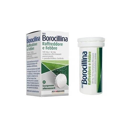Durante il trattamento con NEO BOROCILLINA RAFFREDDORE E FEBBRE prima di assumere qualsiasi altro medicinale controllare che non contenga paracetamolo, poiché, se questo principio attivo è assunto in dosi elevate, si possono verificare gravi reazioni avverse. Il rischio di gravi effetti indesiderati è aumentato anche quando il paracetamolo è assunto insieme ad altri analgesici antipiretici; deve pertanto essere evitato l’uso contemporaneo di questo tipo di medicinali. Il medicinale va usato con cautela nei soggetti affetti da una forma lieve / moderata delle seguenti malattie: • malattia coronarica (angina, precedente infarto); • ipertensione; • aritmie; • insufficienza epatica; • insufficienza renale; • ipertiroidismo; • asma; • diabete; • disturbi della minzione causati da ipertrofia prostatica o da altre patologie; • glaucoma; • anemia emolitica. I pazienti che assumo paracetamolo devono evitare l’uso di bevande alcoliche perché l’alcool aumenta il rischio di danno epatico. Nel corso di terapia con anticoagulanti orali si consiglia di ridurre le dosi. Il paziente deve essere avvertito della necessità di consultare il medico se è già in trattamento con altri medicinali. Informazioni importanti su alcuni eccipienti NEO BOROCILLINA RAFFREDDORE E FEBBRE 500 mg / 60 mg compresse effervescenti contiene: – sorbitolo: i pazienti affetti da rari problemi ereditari di intolleranza al fruttosio, non devono assumere questo medicinale. – aspartame: come fonte di fenilalanina, pertanto può essere dannoso per i soggetti affetti da fenilchetonuria. – 324 mg di sodio (14 mmol) per compressa. Di ciò devono tenere conto i pazienti con ridotta funzionalità renale o in dieta iposodica.