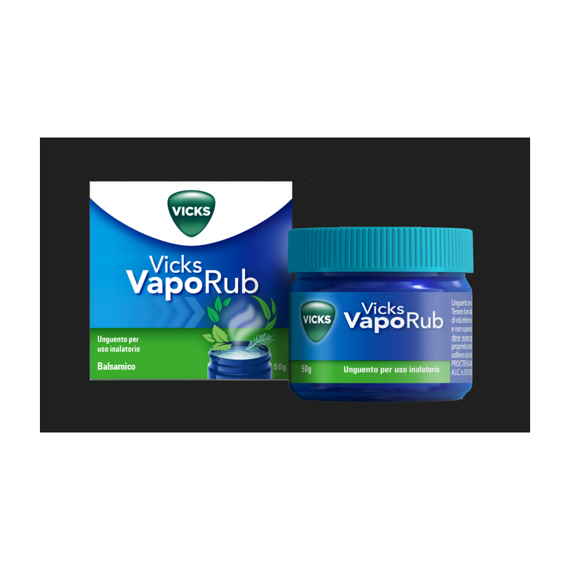 Vicks Vaporub è controindicato nei bambini fino a 30 mesi di età e le inalazioni sono controindicate nei bambini sotto i sei anni (vedere paragrafo 4.3). I bambini devono sempre essere sorvegliati. Vicks Vaporub Unguento Balsamico si può impiegare in due modi: a) Applicare esternamente frizionando dapprima per 3–5 minuti il petto, la gola ed il dorso e poi stendere uno spesso strato sul petto. Ripetere il trattamento 2 volte al giorno di cui una la sera prima di dormire. Non frizionare più di due volte al giorno sulla parte anteriore del torace, sul collo e sul dorso. Indossare abiti ampi per facilitare l’inalazione dei vapori. b) Sciogliere 2 cucchiaini da caffè (2x5ml) in mezzo litro di acqua calda e aspirare il vapore liberato, per un tempo non superiore a 10 min. Al fine di evitare il rischio di gravi ustioni non riscaldare la miscela una seconda volta né riscaldare la miscela durante l’inalazione (v. paragrafo 4.4). Non riscaldare nel microonde. Non superare le dosi consigliate. La durata del trattamento non deve superare i 3 giorni IL PRODOTTO NON DEVE ESSERE INGERITO