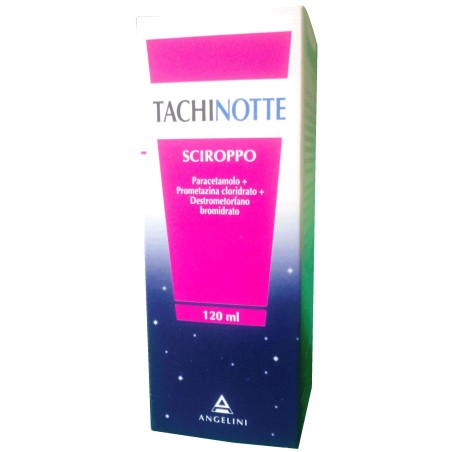 Alle dosi consigliate, o anche nell’ipotesi in cui si dovesse assumere l’intera confezione, non dovrebbero comparire sintomi da sovradosaggio di paracetamolo. Tuttavia in caso di ingestione di dosi molto elevate di paracetamolo (superiori a 10 g), la complicanza più comunemente riscontrata è il danno epatico, che si manifesta in genere 2–4 giorni dopo l’assunzione. I sintomi precoci sono nausea, vomito e dolori addominali: la terapia idonea consigliata è la lavanda gastrica usando antidoti specifici quali acetilcisteina o metionina. Oltre le 10 ore dall’ingestione potrebbe rendersi necessaria una emoperfusione. Considerando che la dose massima consigliata di destrometrofano nelle 24 ore è superiore a 120 mg, con l’uso di questo prodotto non dovrebbero verificarsi condizioni di sovradosaggio. Tuttavia si rammenta che l’effetto principale del sovradosaggio di questo farmaco è costituito da depressione respiratoria e che il naloxone, per via endovenosa, è l’antidoto specifico. Un sovradosaggio di prometazina provoca sonnolenza, e, raramente, in caso di dosaggi molto elevati, convulsioni; in questo caso l’antidoto specifico da utilizzare è il tiopentone sodico. In caso di ingestione accidentale di una dose eccessiva di TACHINOTTE sciroppo avvertire immediatamente il medico o rivolgersi al più vicino ospedale.