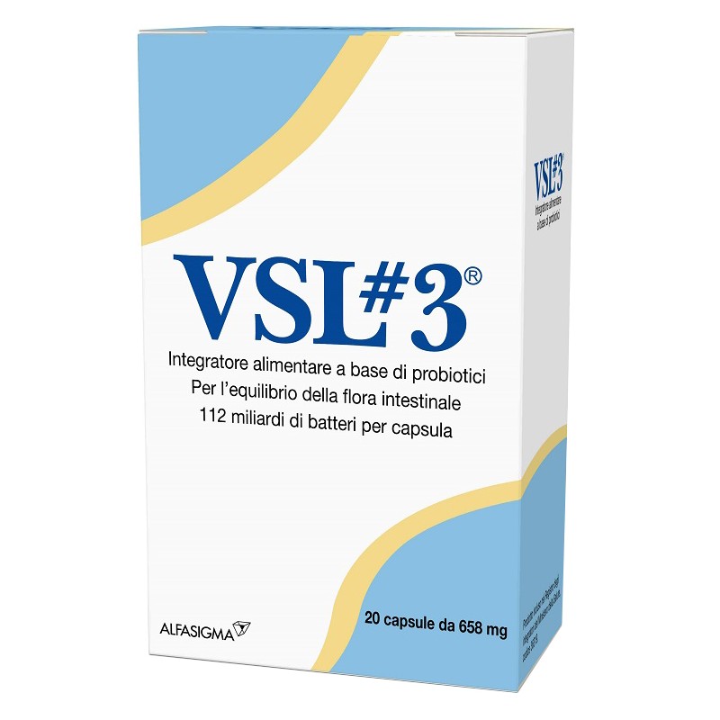VSL3 è una miscela di batteri lattici e bifidobatteri vivi e liofilizzati. Otto diversi ceppi di batteri sono stati selezionati, coltivati in terreni di coltura specifici e quindi miscelati in proporzioni tali da ottimizz...