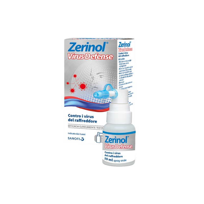 Zerinol Virus Defence è una soluzione che protegge dai virus del raffreddore, riduce la durata del raffreddore se usato in una fase iniziale. Allevia i sintomi del raffreddore e calma il mal di gola. Prodotto da Sanofi.