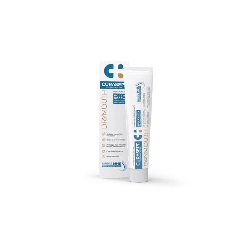 Indicato per chi soffre di bocca secca. Grazie alla formula arricchita con MHS (mouth hydration system), un mix equilibrato di sostanze idratanti, il dentifricio curasept drymouth dona una prolungata sensazione di benessere a tutto il cavo orale, soprattutto in caso di secchezza. Favorisce la protezione del cavo orale, riducendo il rischio di carie e stimolando l'idratazione delle mucose orali.