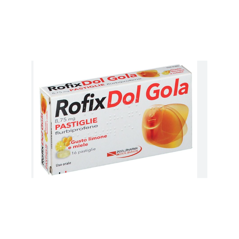 ROFIXDOL GOLA E DOLORE Pastiglie gusto Limone e Miele Una pastiglia contiene: principio attivo: flurbiprofene 8,75mg Eccipienti con effetti noti: Glucosio, saccarosio Per l’elenco completo degli eccipienti, vedere il paragrafo 6.1.