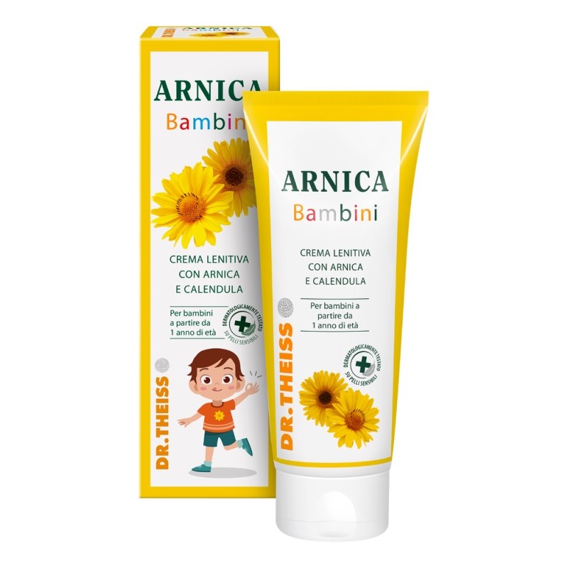 Crema arnica per la pelle del corpo particolarmente delicata dei bambini. La particolare combinazione di arnica, che lenisce la sensazione di fastidio e dona immediato sollievo, e calendula, da sempre conosciuta e utilizzata soprattutto per uso esterno, per la sua attività lenitiva, disarrossante e favorente i processi di rigenerazione.