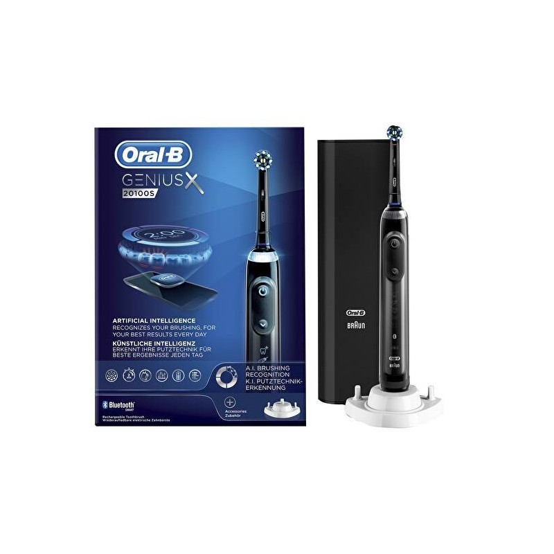 Oral-B Genius X 20100S Black è dotato di sensori di movimento e utilizza l’intelligenza artificiale per riconoscere lo stile di spazzolamento e a guidare quotidianamente verso i massimi risultati. Ora è più facile che mai spazzolare come consigliano i dentisti per una pulizia superiore e gengive più sane. Prodotto da Procter & Gamble.