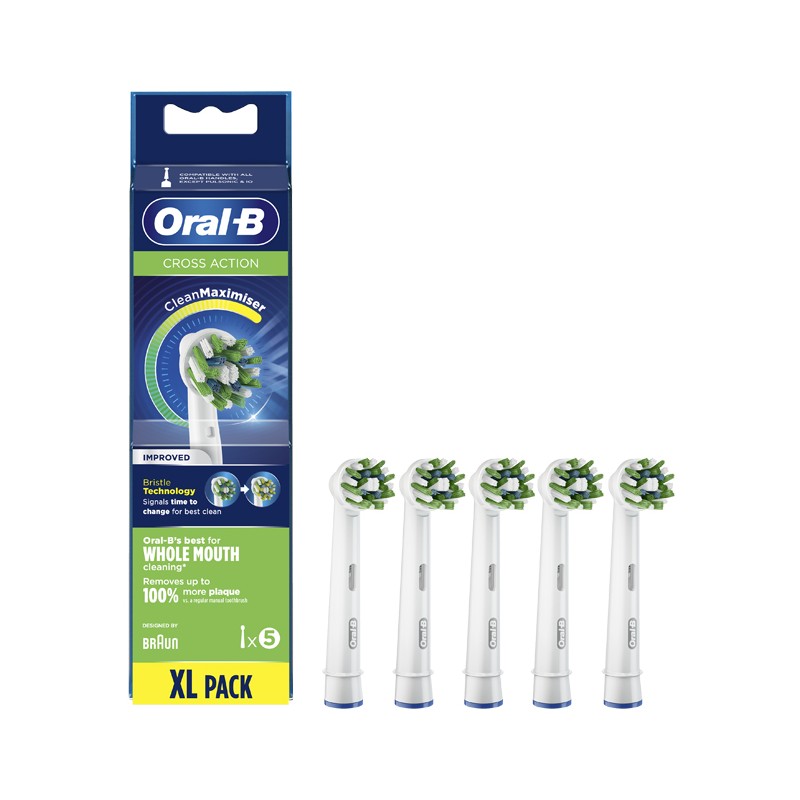 Le testine di ricambio CrossAction migliorate di Oral-B sono sviluppate con la tecnologia CleanMaximiser che trasforma le setole da verdi a gialle, per ottenere prestazioni ottimali e una pulizia migliore.