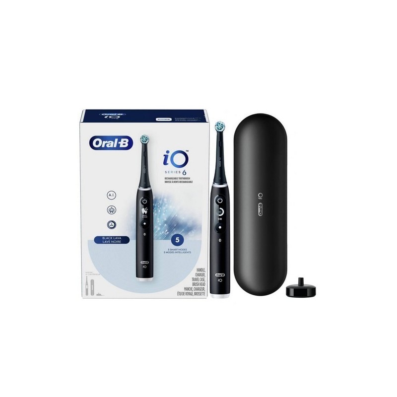 Formato: La confezione presenta 1 spazzolino iO6 con testina pulente di ultima generazione, 1 custodia da viaggio, 1 caricatore.