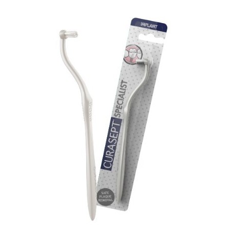 Lo spazzolino implant, grazie alla particolare forma, all'impugnatura ergonomica e alle setole morbide e flessibili, rappresenta lo strumento ideale per l'igiene delle protesi su impianti.
