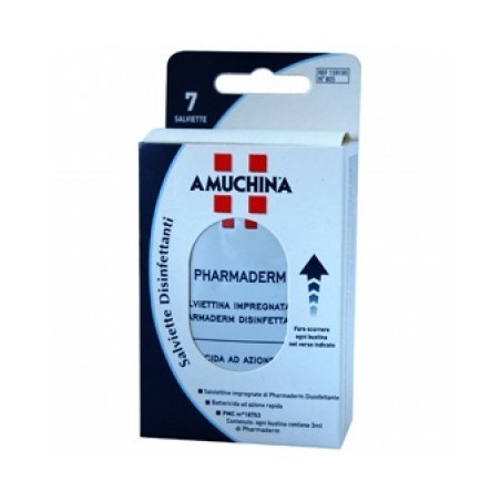 AMUCHINA Salviette Disinfettante sono le salviettine impregnate di Pharmaderm disinfettante per ottenere una rapida ed immediata azione battericida sulla pelle, sia contro i batteri Gram+ e Gram-, per una disinfezione delicata completa e profumata.