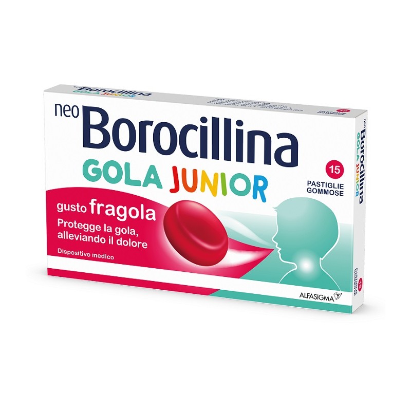 NeoBorocillina Gola Junior è un dispositivo medico per il trattamento degli stati irritativi della gola causati da raucedine, orofaringiti o tonsilliti. Prodotto da Alfasigma.