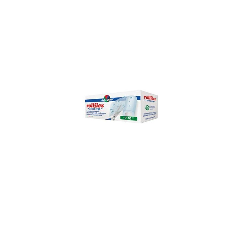 Dispositivo medico CE. Protezione autoadesiva con supporto in poliuretano, circa 20 micron, trasparente e resistente all'acqua. Consente la traspirazione della cute ed evita processi di macerazione. Il collante utilizzato è ipoallergenico. È indicato anche per pelli particolarmente sensibili o irritate. Il distacco di Rollflex Acqua Stop è confortevole ed evita traumi anche nel caso di uso prolungato. Per il fissaggio di medicazioni, garze e come protezione di medicazioni già esistenti.