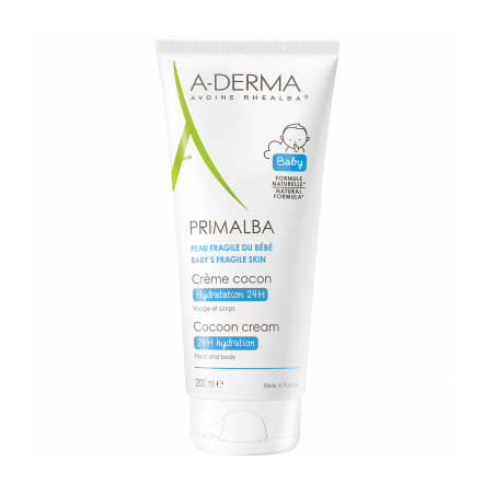 La crema cocon PRIMALBA idrata intensamente e a lungo, lenisce e protegge la funzione barriera della pelle fragile del bebè. L'Estratto di plantule d'avena Rhealba ha un'azione lenitiva per tutta la giornata.
